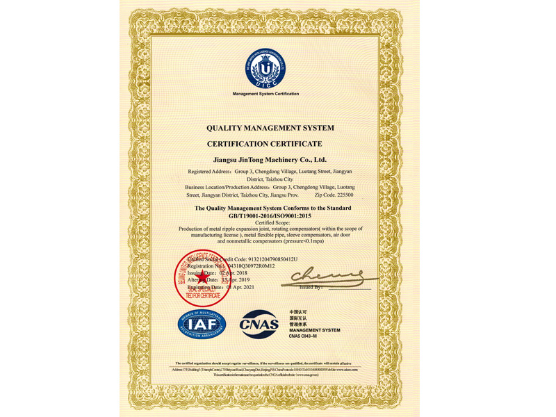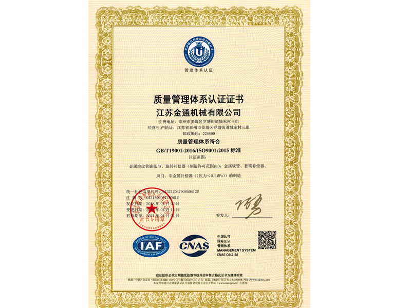 質(zhì)量管理體系證書