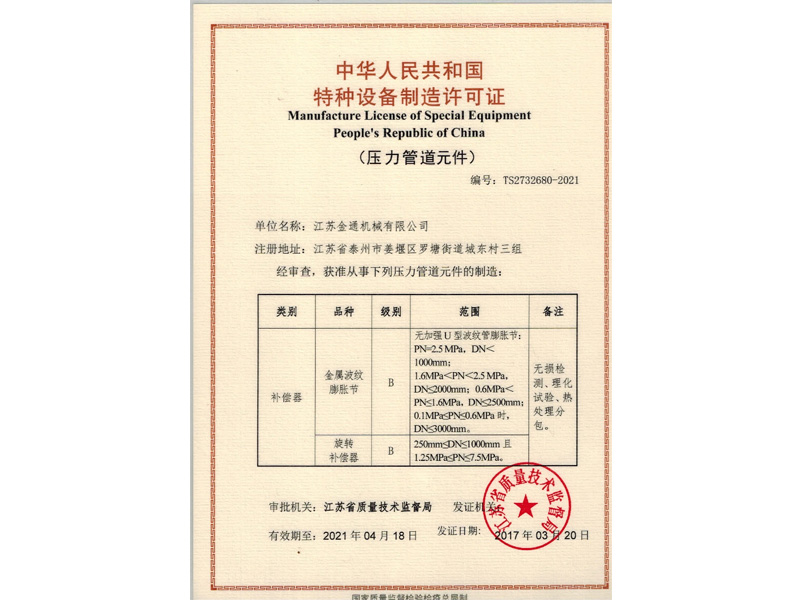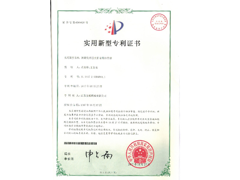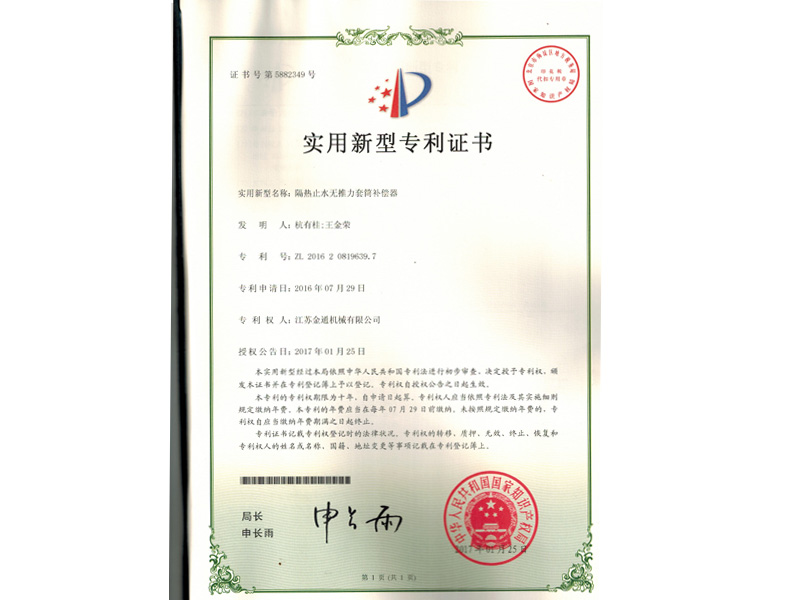 預(yù)硫化焊接式非金屬補(bǔ)償器專利證書